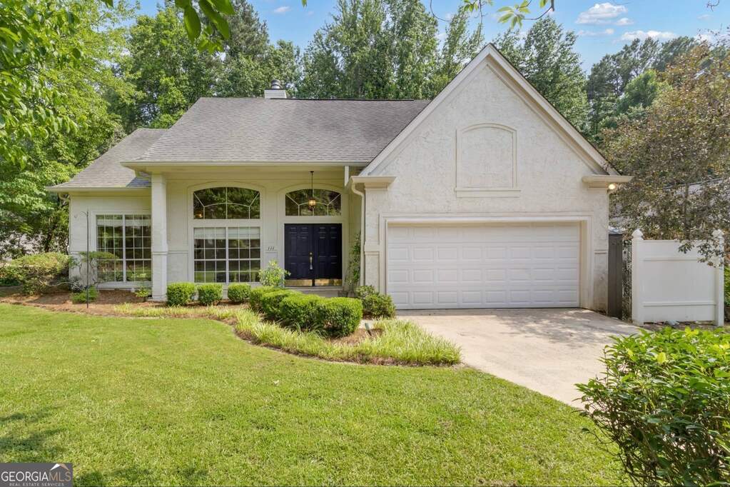 Tucked within the heart of Peachtree City's beloved Kenton Place neighborhood, this charming ranch-style home is more than just a residence-it's an invitation to a lifestyle defined by comfort, nature, and community. Located in a coveted golf cart community and set on a beautifully landscaped half-acre lot, this home offers the perfect blend of serene living and convenient access to everything Peachtree City has to offer. From the moment you arrive, the home welcomes you with classic curb appeal and a cozy covered front porch-the ideal spot to sip morning coffee as the sun rises, and birdsong fills the air. Step inside, and you're greeted by soaring ceilings and an open, airy layout bathed in natural light. The spacious living room and adjoining family room create an ideal setting for both relaxed everyday living and effortless entertaining. A separate dining area is perfect for hosting guests, while the oversized kitchen-complete with generous counter space, storage, and room to gather-anchors the heart of the home. Every window invites the outdoors in, creating a connection to nature that enhances the home's sense of calm and openness. The private owner's suite is a true retreat, complete with a spacious bedroom, a large master bath, and direct access to the tranquil backyard patio. Imagine stepping out each morning to the peaceful sounds of nature and the gentle breeze through the trees. Two additional bedrooms provide plenty of space for family or guests, all designed with comfort and flexibility in mind. The magic continues outside in the private courtyard-style backyard, a hidden gem perfect for quiet afternoons or festive gatherings. Whether you're enjoying a quiet read under the shade, hosting a weekend cookout, or simply unwinding after a long day, this outdoor space is designed to nourish your soul. Accessed directly from both the family room and master suite, it's a seamless extension of the indoor living area. Set just moments from the scenic Braelinn Golf Course, this home is perfectly positioned to enjoy the best of Peachtree City. Hop on your golf cart and explore more than 100 miles of paths that weave through lush parks, picturesque lakes, and charming villages. Discover a wealth of local shopping, dining, and entertainment options, all just minutes from your front door. From cozy cafes and boutique shops to bustling restaurants and community events, there's always something to enjoy. Families will love the home's placement within the award-winning Starr's Mill school district, while all residents benefit from the welcoming, tight-knit spirit of Kenton Place-a neighborhood known for its quiet streets, friendly faces, and close proximity to everything that makes Peachtree City such a special place to call home. Whether you're starting your next chapter, downsizing to single-level living, or simply seeking a peaceful retreat with lifestyle perks to match, this Kenton Place gem offers the rare opportunity to live beautifully, comfortably, and connected. Schedule your private tour today and discover the easy charm and timeless appeal of this Peachtree City sanctuary. Home is priced to sell and sold AS-IS.