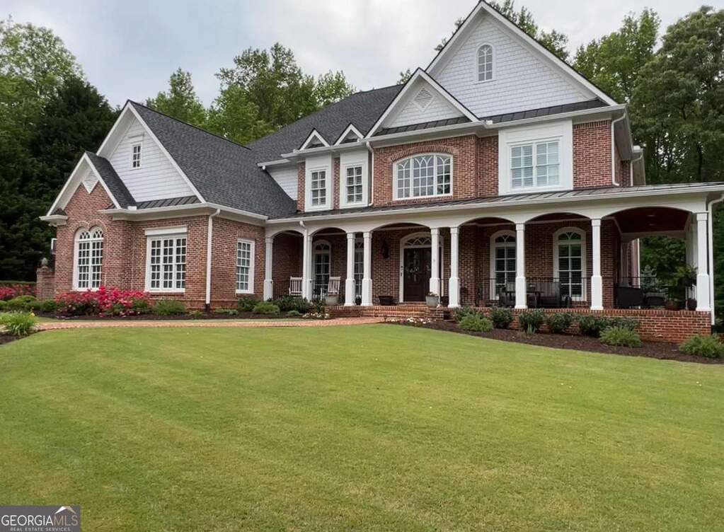 Located in the prestigious The Manor Golf & Country Club, this exceptional estate sits on 1.69 acres and offers an impressive blend of luxury, space, and thoughtful design. Featuring 7 bedrooms, 6 full bathrooms, 2 half bathrooms, a fully finished terrace level, and 4 fireplaces, this home delivers an elevated living experience both inside and out. The exterior showcases four-sided brick construction with cedar shake accents, an oversized 3-car garage, a wrap-around porch, and beautifully maintained landscaping that creates stunning curb appeal. Step inside to a grand two-story foyer accented by beautiful hardwood floors. To the right, a private study/office features a wall of built-ins and French doors leading to the porch. To the left, the elegant formal dining room opens to a convenient butler's pantry. The living room offers an open and inviting space with an extra-large custom window, 13-foot coffered ceilings, and a striking limestone fireplace. The chef's kitchen is a true centerpiece, showcasing glass-front cabinetry, quartzite countertops, a 6-burner gas range, double ovens, an oversized island, hidden refrigerator, hidden walk-in pantry, and a mudroom. The adjoining keeping room, highlighted by beautiful brick arches, adds warmth and character. The breakfast room overlooks the private backyard and opens through French doors to a covered patio featuring a stone fireplace, grill, and electrical connections for a TV or sound system-perfect for indoor-outdoor living and entertaining. Main Level: Ensuite guest bedroom Upper Level: Oversized primary suite with private sitting area, fireplace, and vaulted ceiling/Spa-inspired bath with dual vanities, oversized walk-in closet, and private laundry/Three additional ensuite bedrooms/Media room with wet bar and built-ins Terrace Level: Ensuite bedroom plus additional bedroom with private exterior entry/Kitchenette with dining space and patio access/Custom mahogany bar featuring dual temperature wine refrigerator, icemaker, dishwasher, and undercounter refrigeration/Game room and family room, both opening to a spacious rear patio/Ample storage space Community Amenities: Residents of The Manor enjoy a lifestyle of living, connecting, and playing with access to a Tom Watson-designed golf course, indoor and outdoor pools, tennis courts, fitness facilities, and a clubhouse offering fine dining and year-round social events. The Manor is ideally located near GA 400 and just minutes from the premier shopping, dining, and entertainment of Halcyon, Avalon, Crabapple, and downtown Alpharetta.